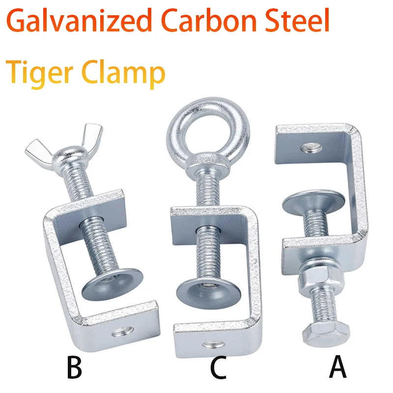 1Pcs C-Type Square Fixed Fixture 20~130mm Galvanized Carbon Steel Tiger Clamp Clamping Device Lifting Ring/Butterfly/Hexagon