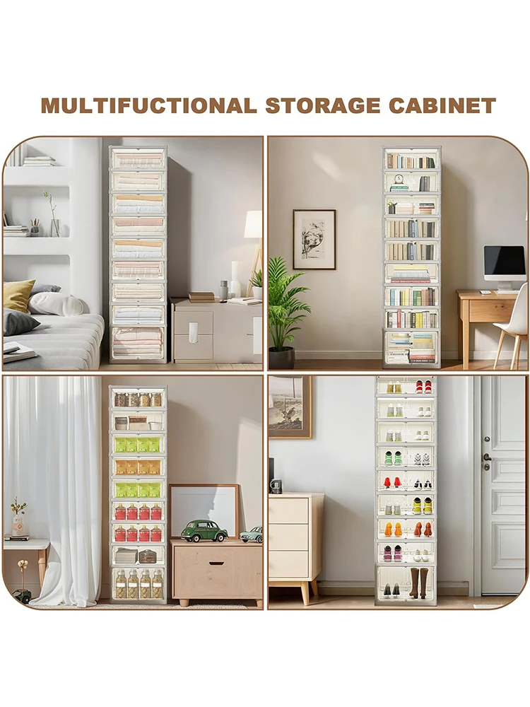 9-Tier Shoe Rack Organizer, 18-Pair Capacity Foldable Storage Cabinet with Magnetic Doors,Stackable Plastic Shelves for Hallway