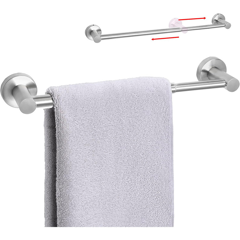 Adjustable Design for Maximum Convenience This adjustable towel bar offers a versatile solution for any bathroom or kitchen. Designed to extend or retract to your preferred length, it saves space while providing plenty of room to hang towels, clothes, and more. Whether you need extra length or a compact option, this retractable towel bar has you covered. Durable and Rustproof Stainless Steel Crafted from stainless steel, this rustproof wallmounted towel holder is built to withstand the rigors of daily use. With its sleek, modern design, it resists corrosion and maintains its strength, even in humid bathroom environments. Enjoy a durable towel holder that lasts for years to come. SpaceSaving Solution for Bathrooms and Kitchens Perfect for tight spaces, this extended towel holder can be mounted on any wall, allowing you to store towels, dish rags, or washcloths without taking up too much room. Its ideal for small bathrooms, kitchens, and laundry rooms. The wallmounted installation ensures your towels stay organized without crowding your counters. Easy to Install and Use This adjustable towel bar is designed for simple installation, so you can start using it right away. The extendable design makes it easy to adjust based on your needs, and its stainless steel finish adds a touch of elegance to your home decor. Upgrade your space with this highquality, functional towel bar. Key Features: Adjustable design for customizable length Retractable feature for spacesaving convenience Rustproof stainless steel for longlasting durability Wallmounted installation for easy setup and sturdy support Ideal for both bathrooms and kitchens Extended towel holder perfect for organizing multiple towels Buy Now to enjoy a cleaner, more organized bathroom or kitchen with this adjustable towel bar that saves you space while providing reliable support.