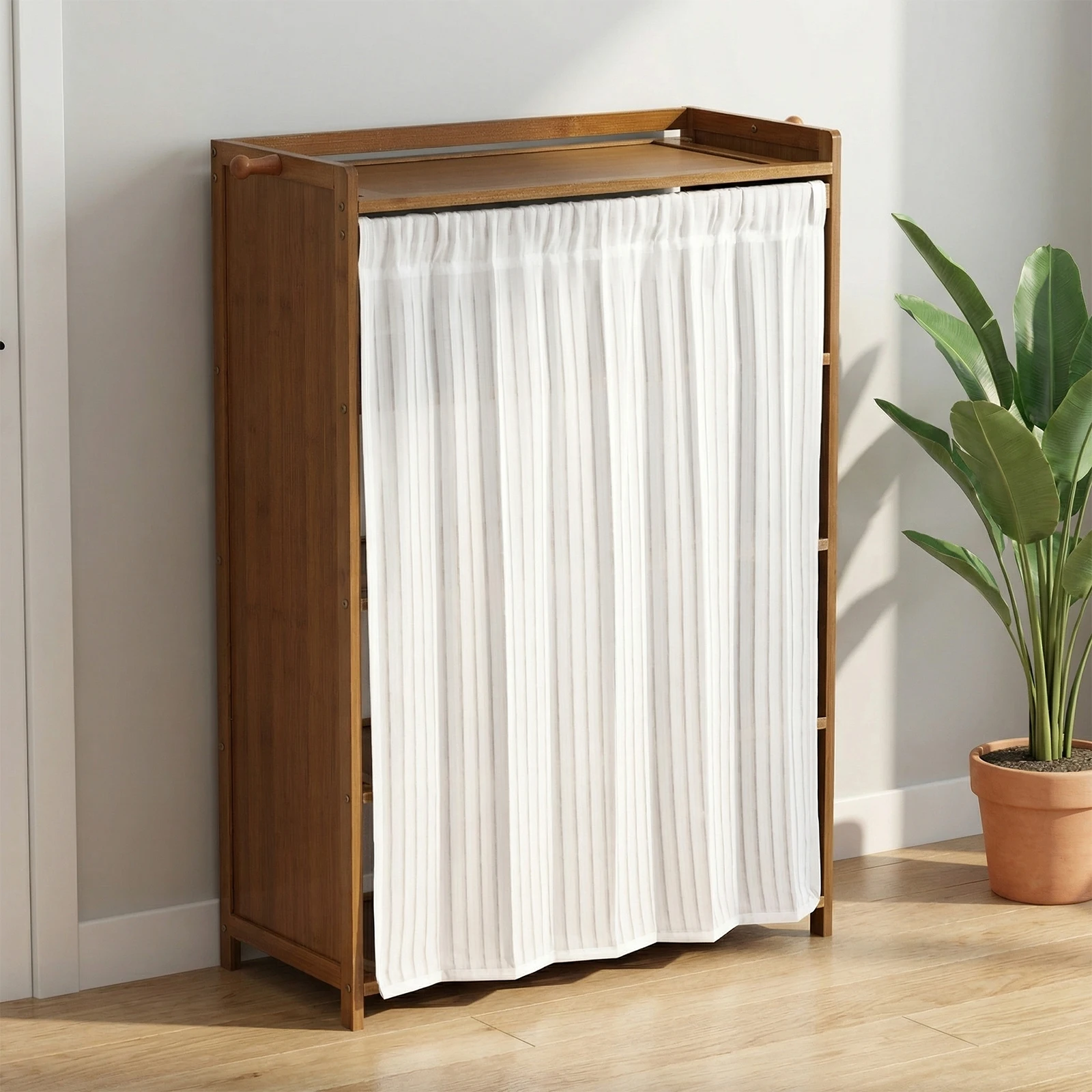 Bamboo Shoe Cabinet 5-Tier Shoe Rack with Curtain for Entryway Hallway (50CM)