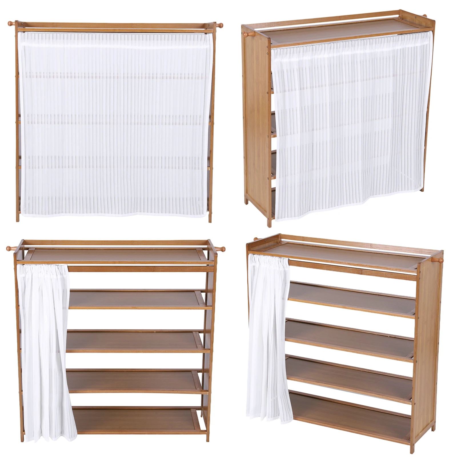 Bamboo Shoe Storage Cabinet with Curtain Free Standing Shoe Storage Organizer for Heels Boots Slippers in Hallway Living Room