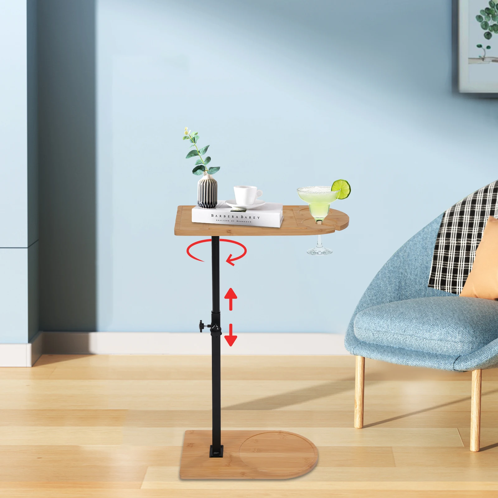 C-Shaped Side End Table Sofa Tub End Table Bathtub Tray Table Freestanding 40kg Capacity for Living Room, Bedroom, Office