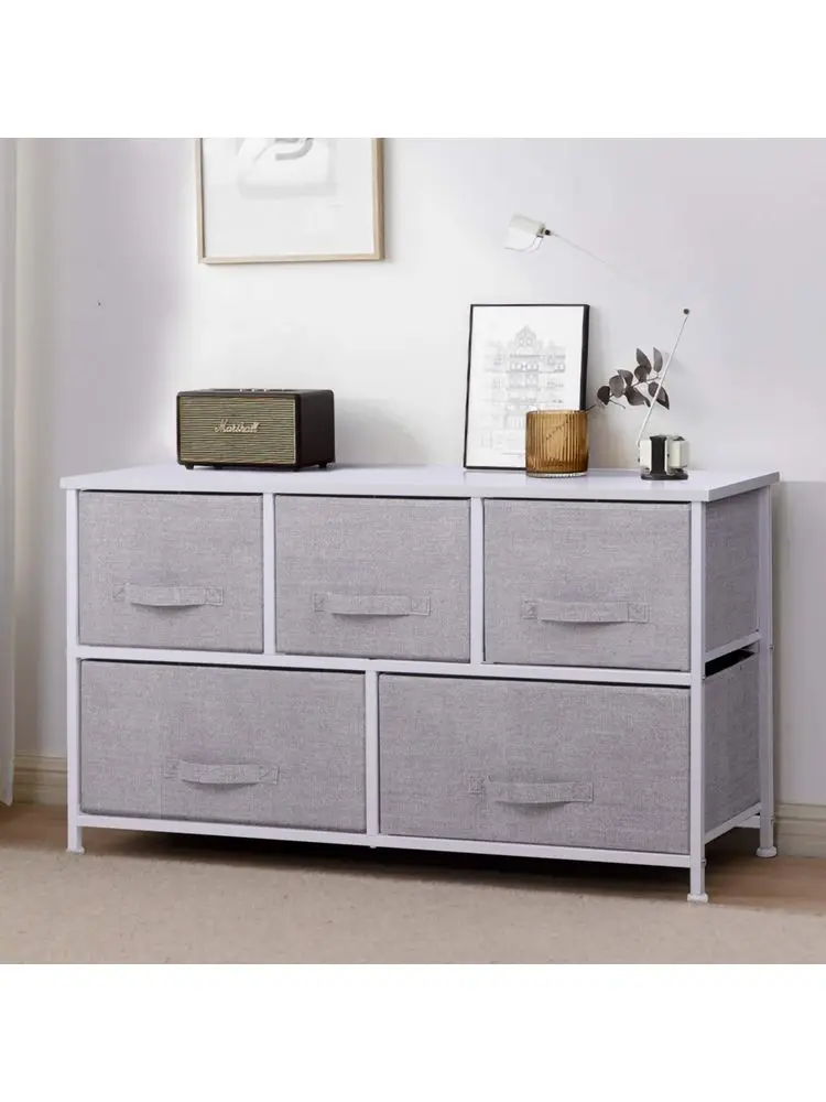 Chest of Drawers, Storage Wardrobe Cabinet with 5 Fabric Drawers and Metal Frame, Cloth Organizer Unit for Living Room, Bedroom