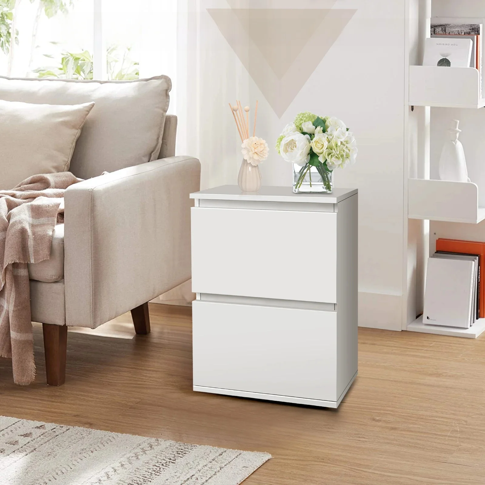 EFAN Bedside Tables White Wooden Nightstand Small Side Table End Table for Bed Sofa Corner Small Space with 2 Drawer MDF Cabinet