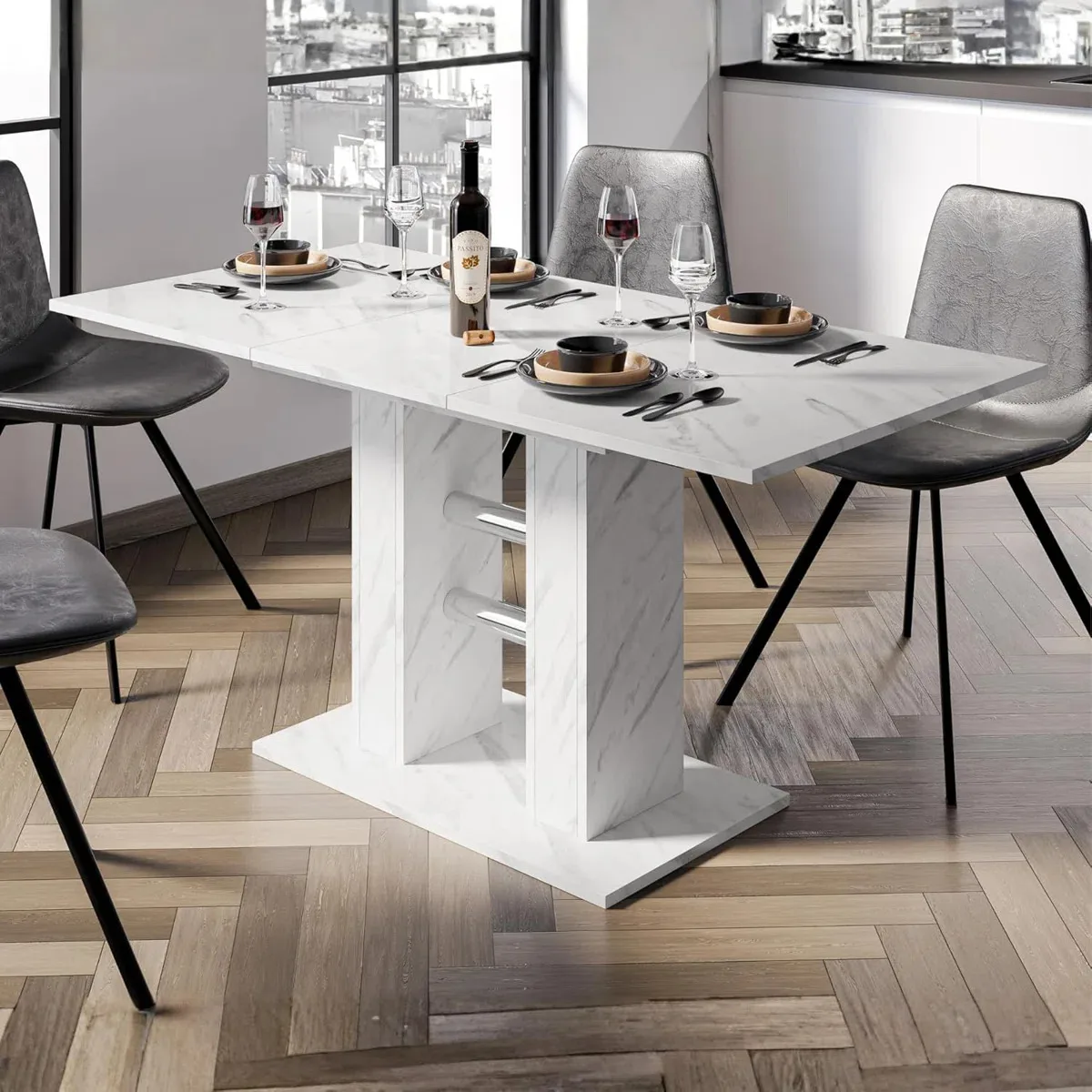 Extendable Dining Table With Marble Effect WILD MINI Small Extending Table 100-140 For 4 Seater – Elegant White Finish