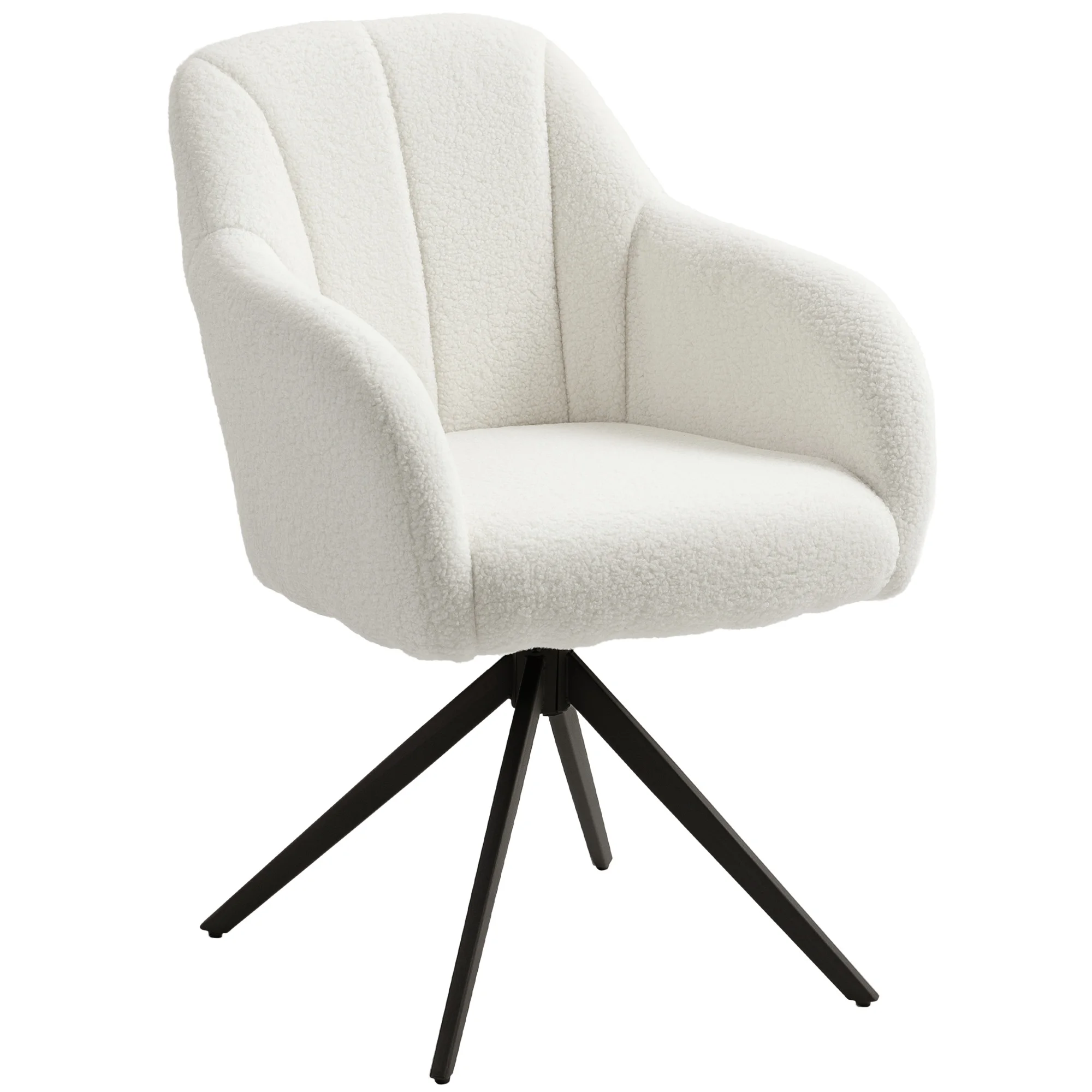 HOMCOM 360 Degree Swivel Accent Chair, Teddy Fleece Fabric Armchair, White