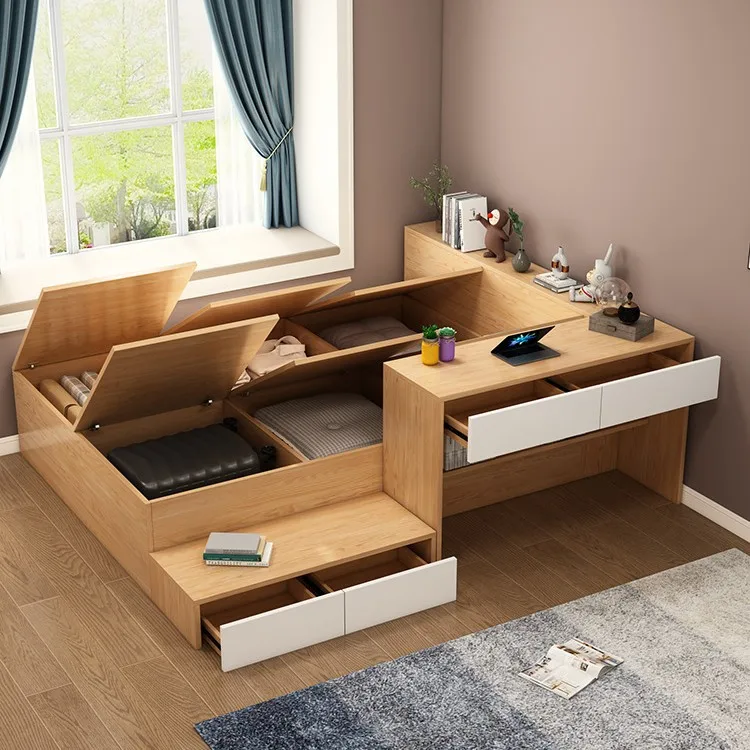 JC Type Tatami Wardrobe Combination High Box Storage Bed Bookshelf Desk Integrated Bed Children’s Multi-functional Storage