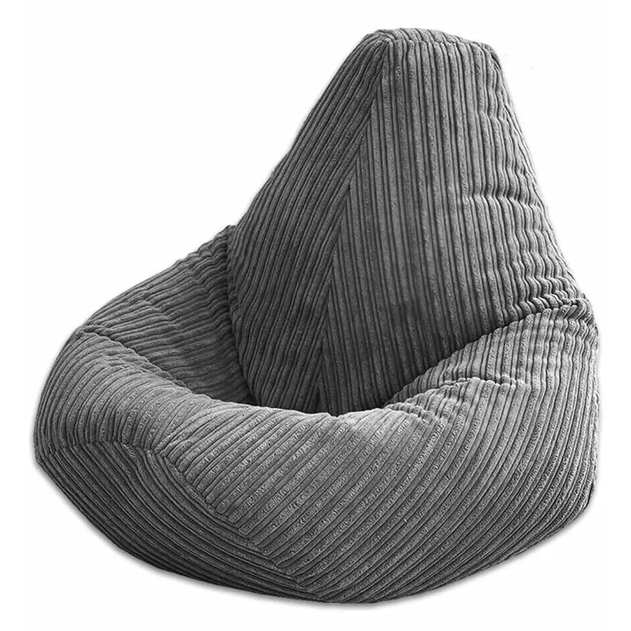 Jumbo Cord Beanbag Chair, Large Plush Jumbo Cord High Back Lounger, Recliner Grey