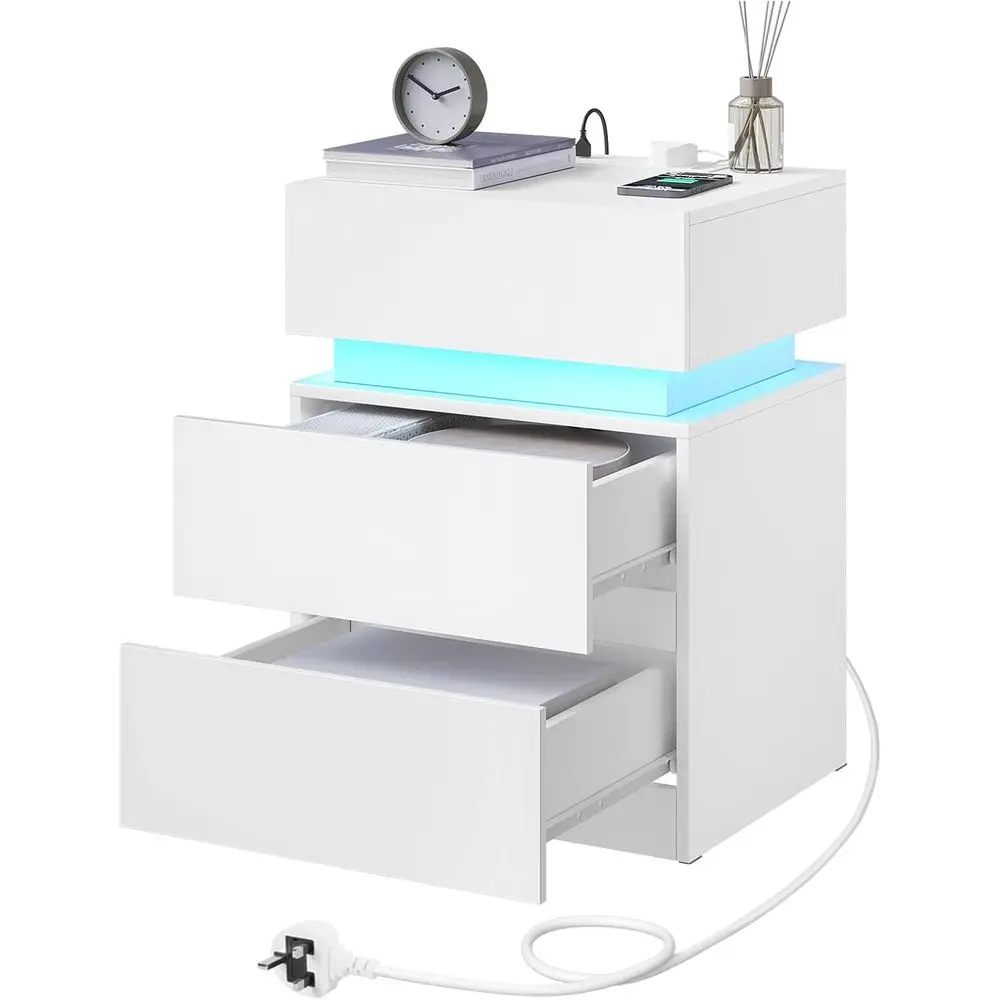 LED-Illuminated Charging Nightstand with 2 Outlets, 1 USB & 1 Type-C Port, White