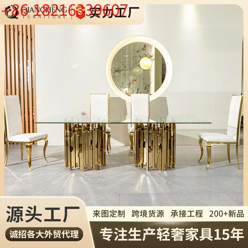 Light luxury glass dining table premium dining table hotel stainless steel table high-end