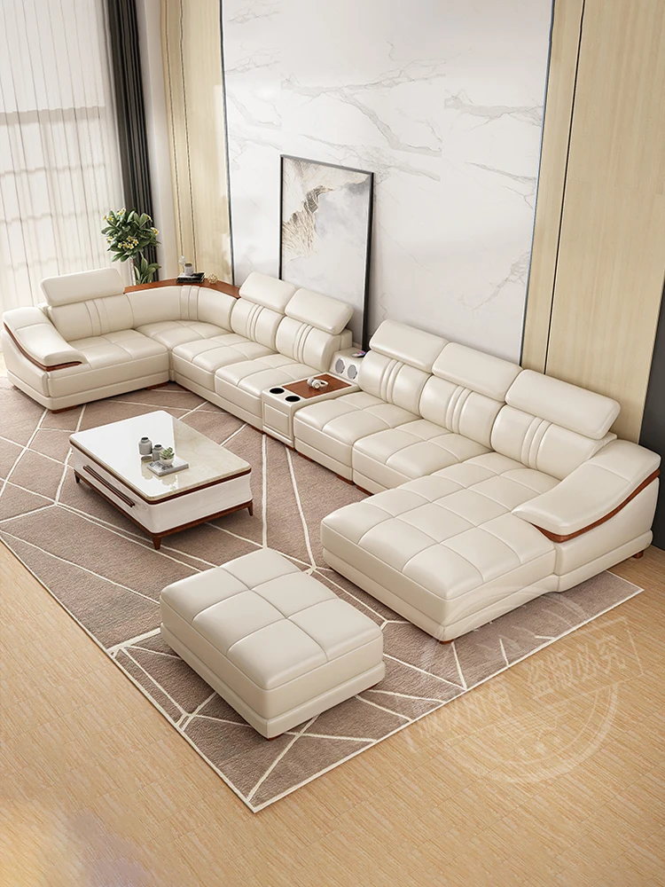 Linlamlim Living Room Couch – Elegant Genuine Leather Sectional Sofa Set with Cup Holder, Adjustable Headrest &Bluetooth Speaker