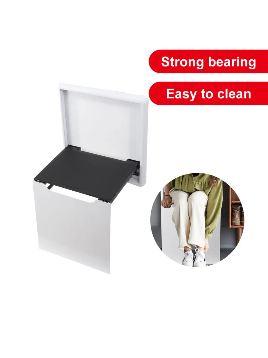 Max.Load 100kg/200lbs Folding Chair Wall-Mounted Stool Invisible Shoe-Changing Stool Entry Hallway Kitchen 40x42cm