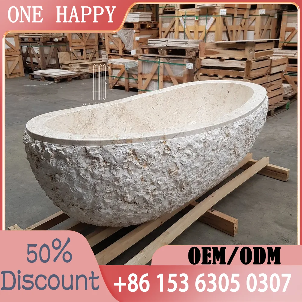 Nordic Luxury Marble Bathtub, Round One-Piece Freestanding Tub for Villa, Heat Retention & Easy Clean, Body Contour, Customizabl
