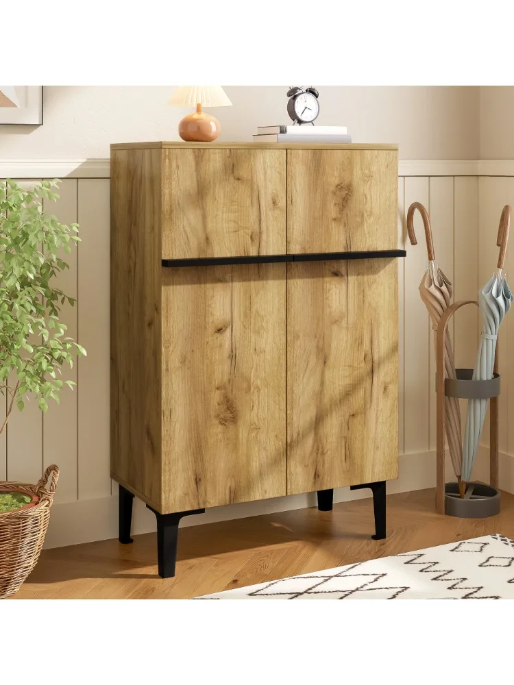 PINGGO Modern Double Doors Shoe Cabinet Large Storage Space Adjustable Shelves Entryway Hallway Storage Cabinet