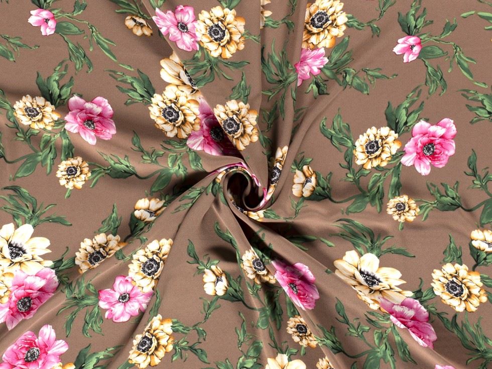 Polyester Georgette Fabric Brown Flowers