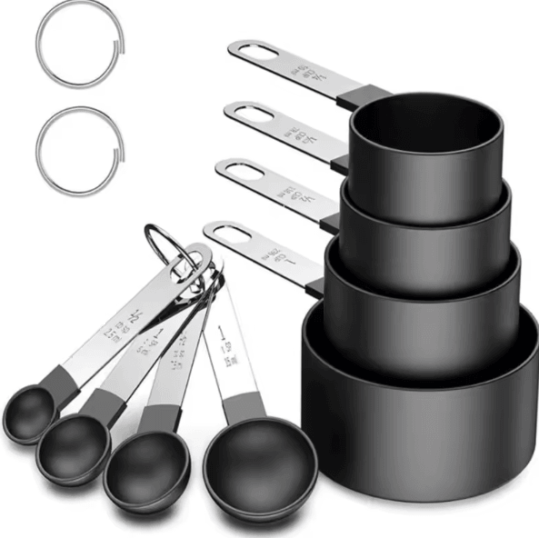 Cooking should feel effortlessand that starts with accurate measurements. This premium measuring cups and spoons set gives you precision and confidence whether you’re baking desserts or preparing everyday meals. Crafted from durable stainless steel measuring cups with soft silicone grips, it combines strength with comfort for smooth handling. Designed for both beginners and experienced cooks, it ensures every recipe turns out just right. Its a simple upgrade that makes a big difference in your kitchen. Key Features Complete 8piece kitchen measuring tools set for both dry and liquid ingredients Durable stainless steel construction resists rust and ensures longterm use Nonslip silicone handles provide comfort and control during use Clear engraved markings for accurate measurements that wont fade over time Why Choose Our PrecisePro 8Piece Stainless Steel Measuring Cups & Spoons Unlike plastic alternatives, this silicone handle measuring set offers better durability, stability, and longterm accuracy. The combination of sturdy steel and soft grips makes it easier to measure ingredients precisely without spills or discomfort. Its built for everyday reliability and consistent cooking results. Perfect For (Occasions & Uses) Baking cakes, cookies, and pastries with precision Cooking meals that require exact ingredient measurements Measuring dry goods like flour, sugar, and grains Everyday kitchen prep for home cooks and professionals Product Specs Material: Stainless steel + silicone handles Set Includes: Measuring cups and spoons (8 pieces) Features: Engraved measurements, stackable design Use: Dry and liquid ingredient measurement Cook with Confidence and Perfect Accuracy Every Time Make every recipe easier and more precise with the PrecisePro Measuring Cups & Spoons Set. Upgrade your kitchen essentials today and enjoy better cooking results with every meal.