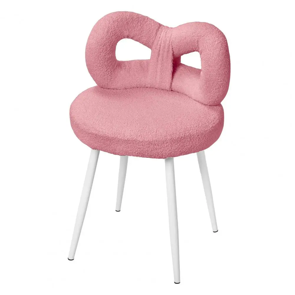 Room Chair Vanity Stool with Bowknot Backrest Adjustable Foot Pads Makeup Chair Armless Dressing Seat for Living Room Bedroom