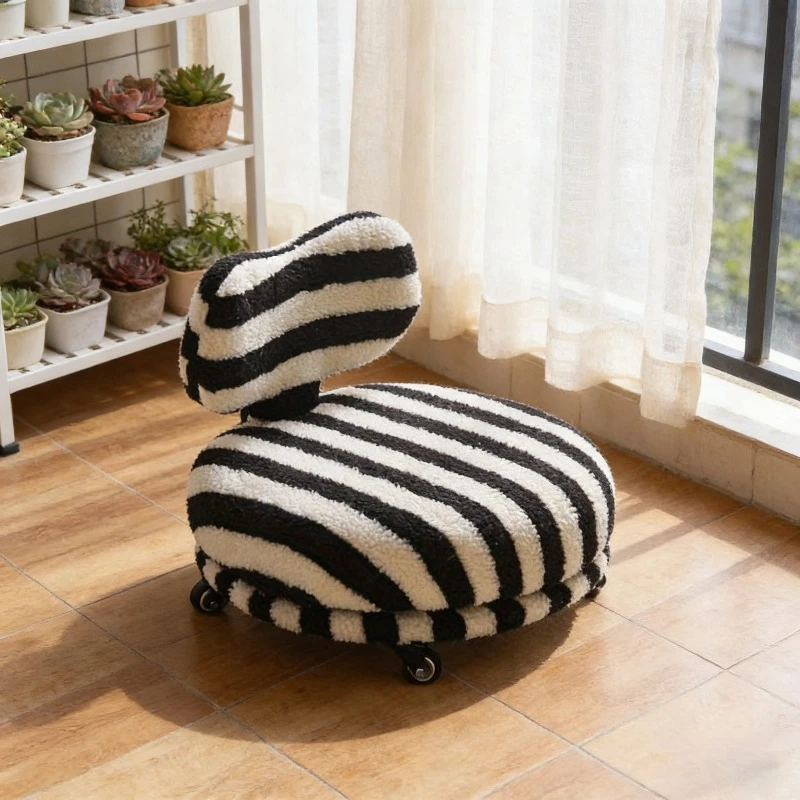 Rotating Lamb Fleece Round Stool, Tatami Lazy Sofa Chair for Living Room,Pier Back Chair with Thick Cushion, Modern Home Seating