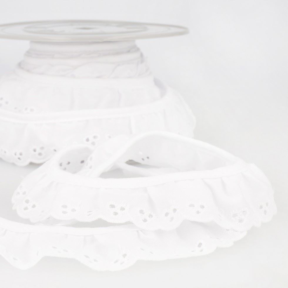 Stephanoise Broderie Anglaise Gathered Lace Trim White