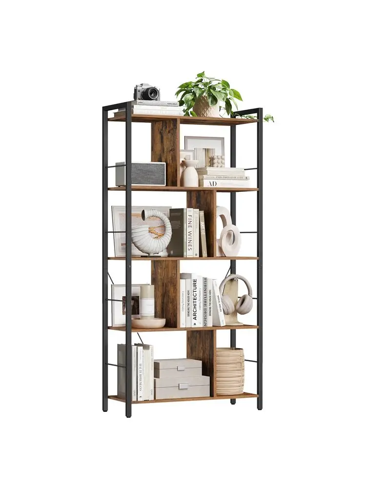 Storage Unit, Bookcase, 5 Tiers, Open Compartments, Office Living Room, Bedroom, Industrial Style, Rustic Brown and Black LBC12