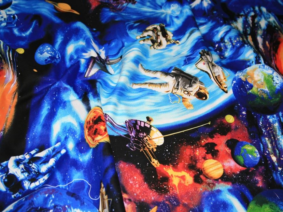 This wonderful vibrant spacemen print fabric is perfect for boys and girls who love planets and space! Perfect for Patchwork and Quilting, Dressmaking, Home Crafts and much more. An extremely versatile, gorgeous quality premier cotton prints from Timeless Treasures.